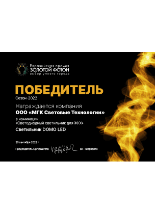 quality of our lamps is confirmed by awards and diplomas of prestigious Russian
