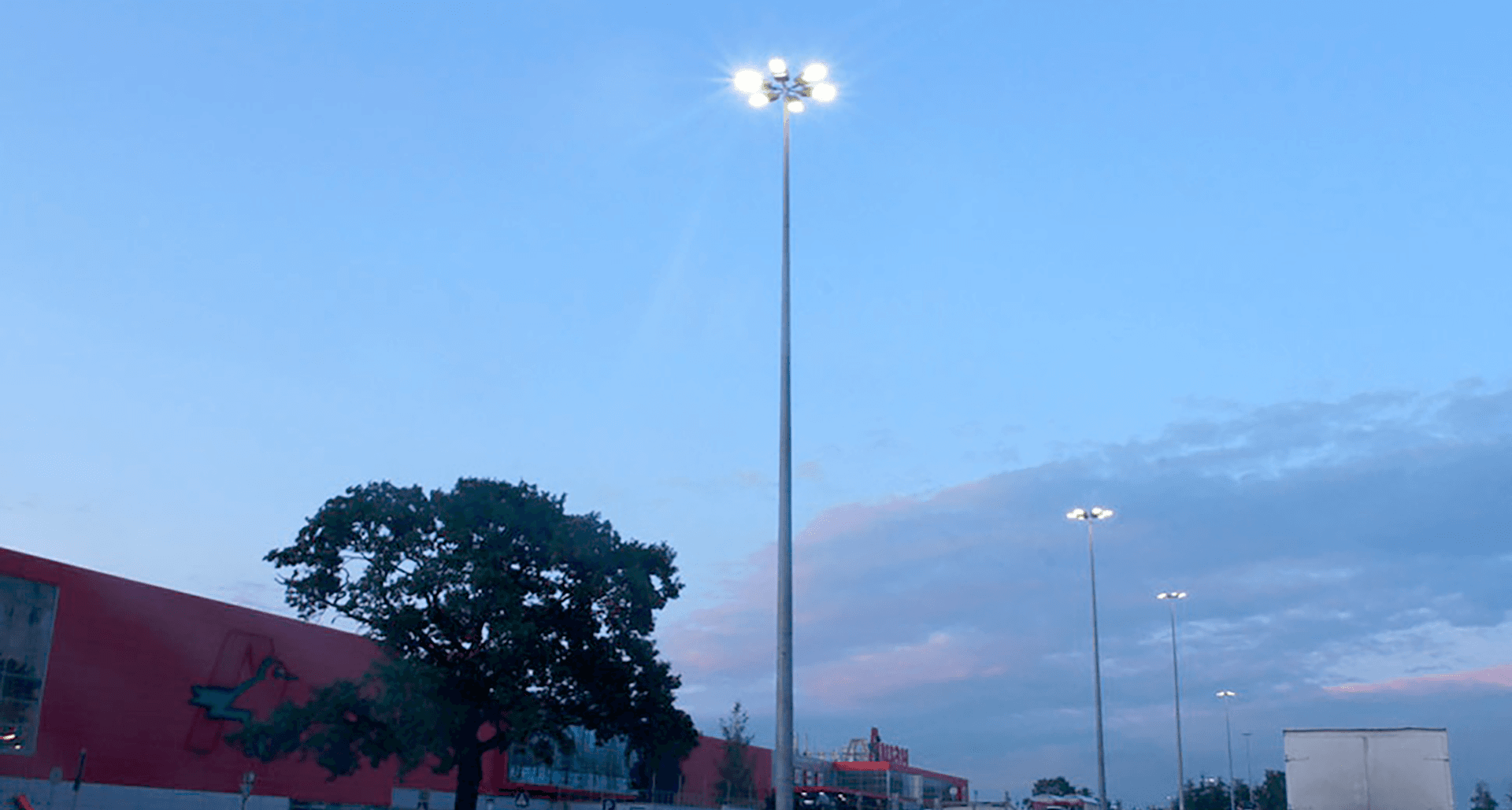 замена освещения на светодиодное. Опоры разной высоты уже установлены – 11 метров и 20 метров высотой.
