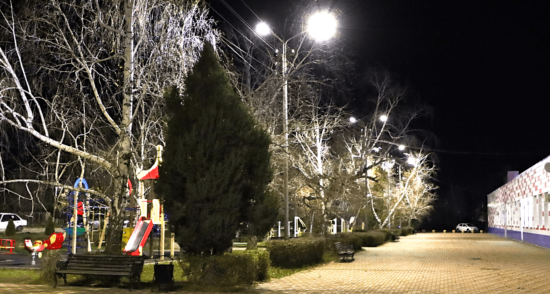 Произведена замена 4 337 светильников, установлено 84 шкафа управления наружным освещением, 35 новых опор освещения, 1404 кронштейнов, смонтировано 13,5 км самонесущего изолированного провода.