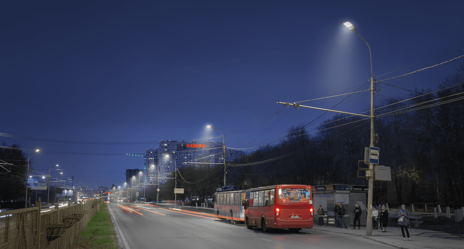 Масштабная модернизация уличного освещения. Применение светильников с температурой света 4000 К, выбранной большинством голосов жителей города на платформе «Госуслуги». Это световая температура, которую рекомендуют для городского освещения и специалисты.