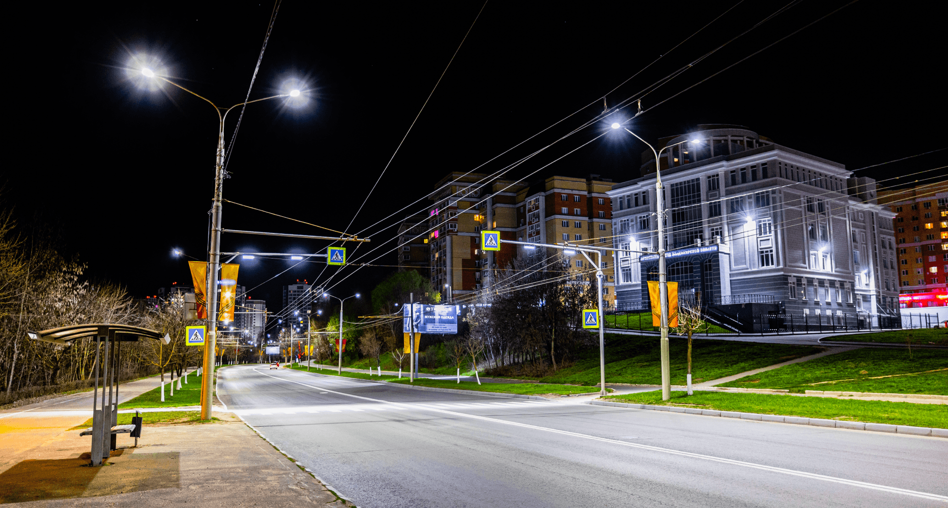Модернизация осуществлена в два этапа (2016 и 2020 годы). Произведена замена около 16 тыс. светильников, на втором этапе устанавливались также новые кронштейны. Экономия по первому этапу – более 58%, по второму – более 50%. Цена обоих контрактов – более 255 млн рублей за счет средств подрядчика. Проект реализован ООО «Световые Технологии ЭСКО» с использованием светотехнического оборудования МГК «Световые Технологии»