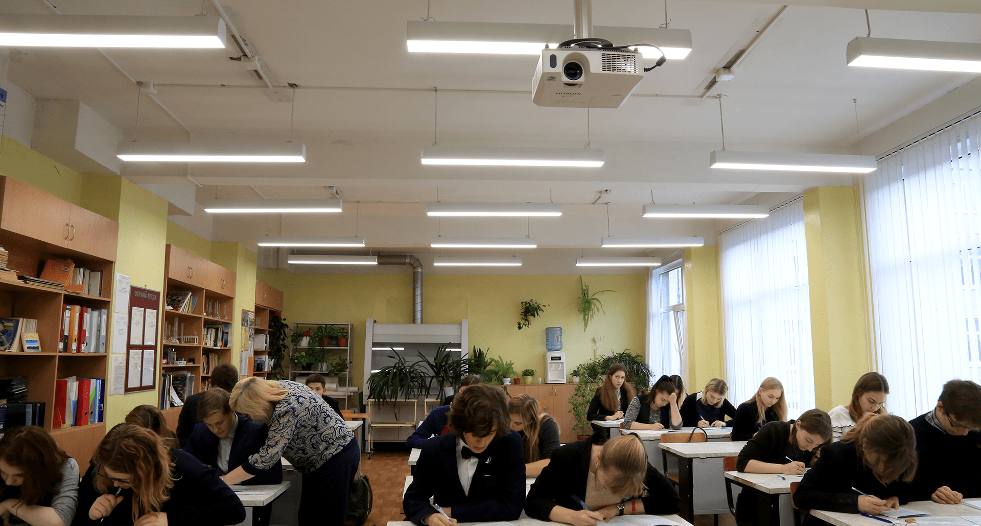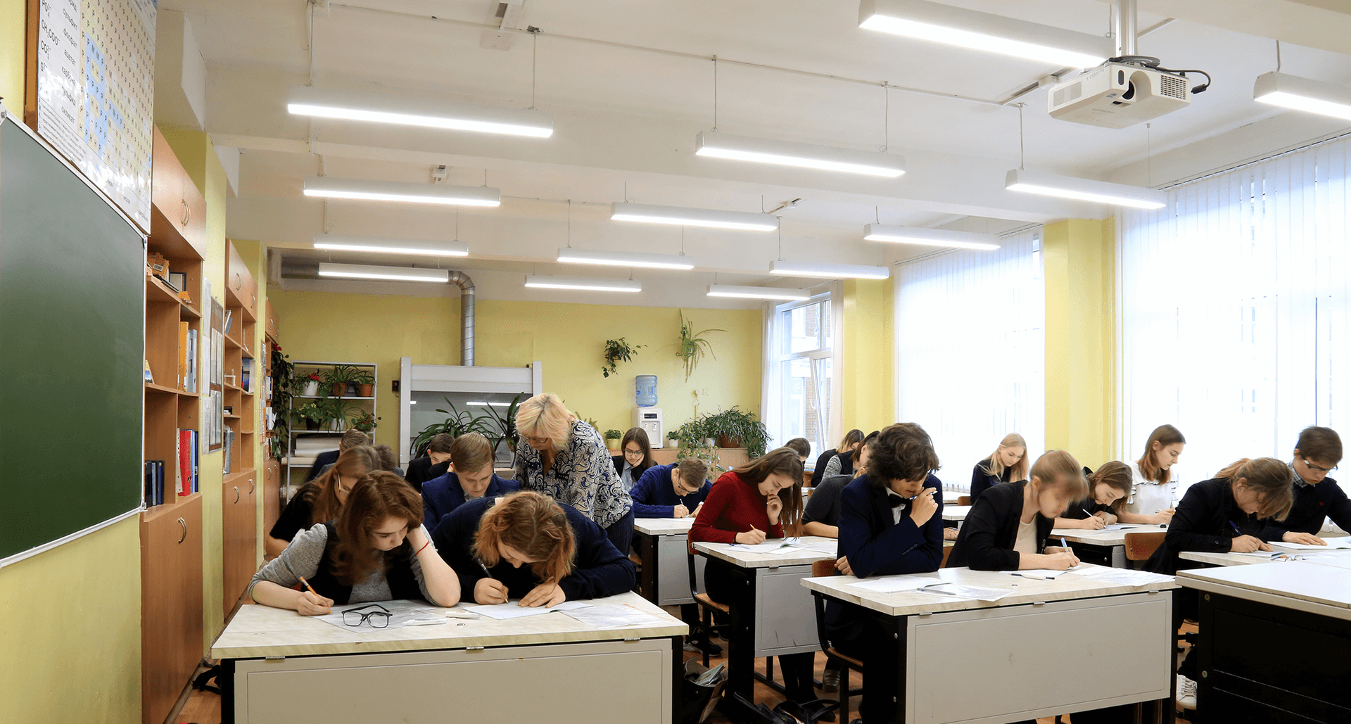 Линейные светильники LINER CF из нашей линейки биологически и эмоционально эффективного освещения установлены в учебных классах одной из санкт-петербургских гимназий. Это первый в нашей практике случай, когда светильники с возможностью изменения цветовой температуры установлены в образовательном учреждении. Современные технологии оценили учителя и особенно старшеклассники, которые мгновенно разобрались во всех преимуществах инновационного освещения.