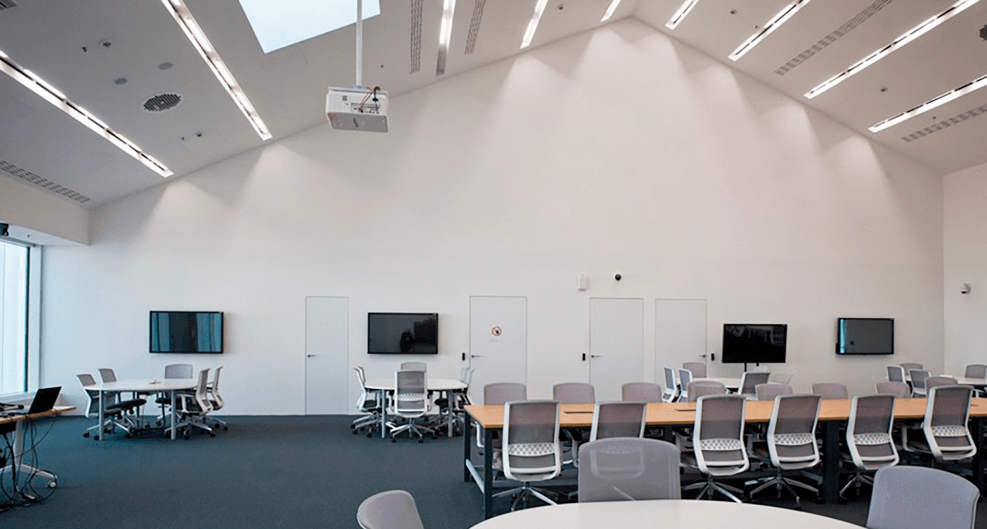 Проект сертифицирован по системе LEED. Предлагая светотехнические решения, надо было брать в расчет жесткие требования – соответствие всем российским и зарубежным нормативам. Одна из задач - применение умных решений по управлению освещением. Ограничение блескости явилось одной из важнейших задач при проектировании. Нужно было соблюсти нормируемые значения UGR. Была поставлена задача, чтобы на светильниках в выключенном состоянии не отражались блики естественного света из окон. Для этого был подобран специальный светотехнический пластик, которым и оснащены приборы.