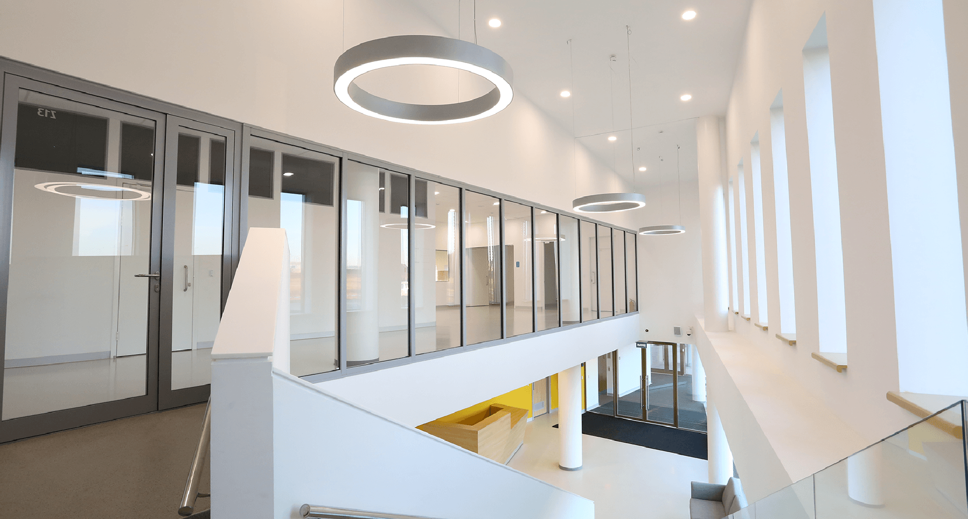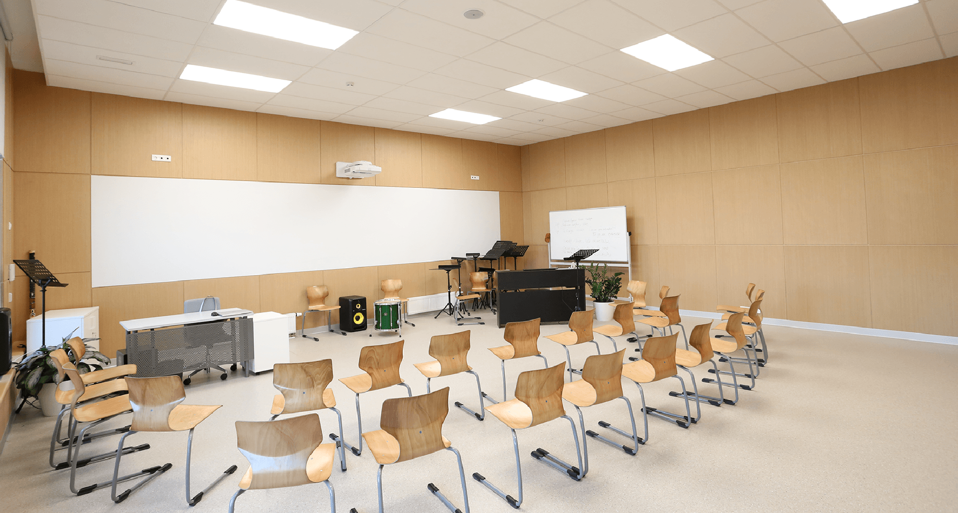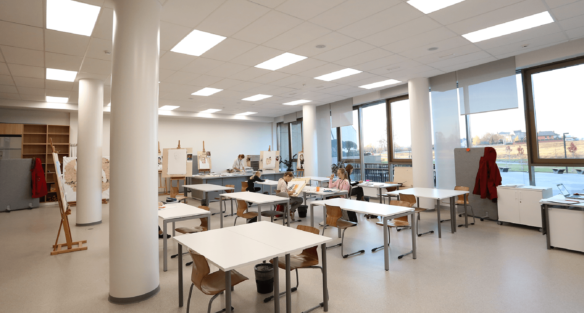 Необходимо было учесть технические требования и особенности и спроектировать освещение для школы высокого международного уровня.