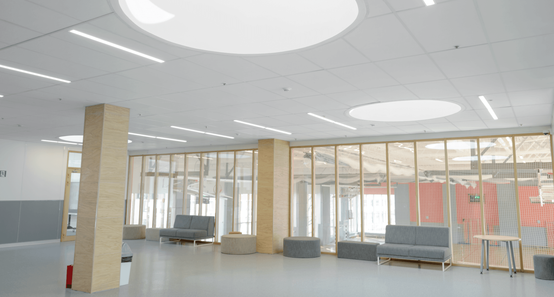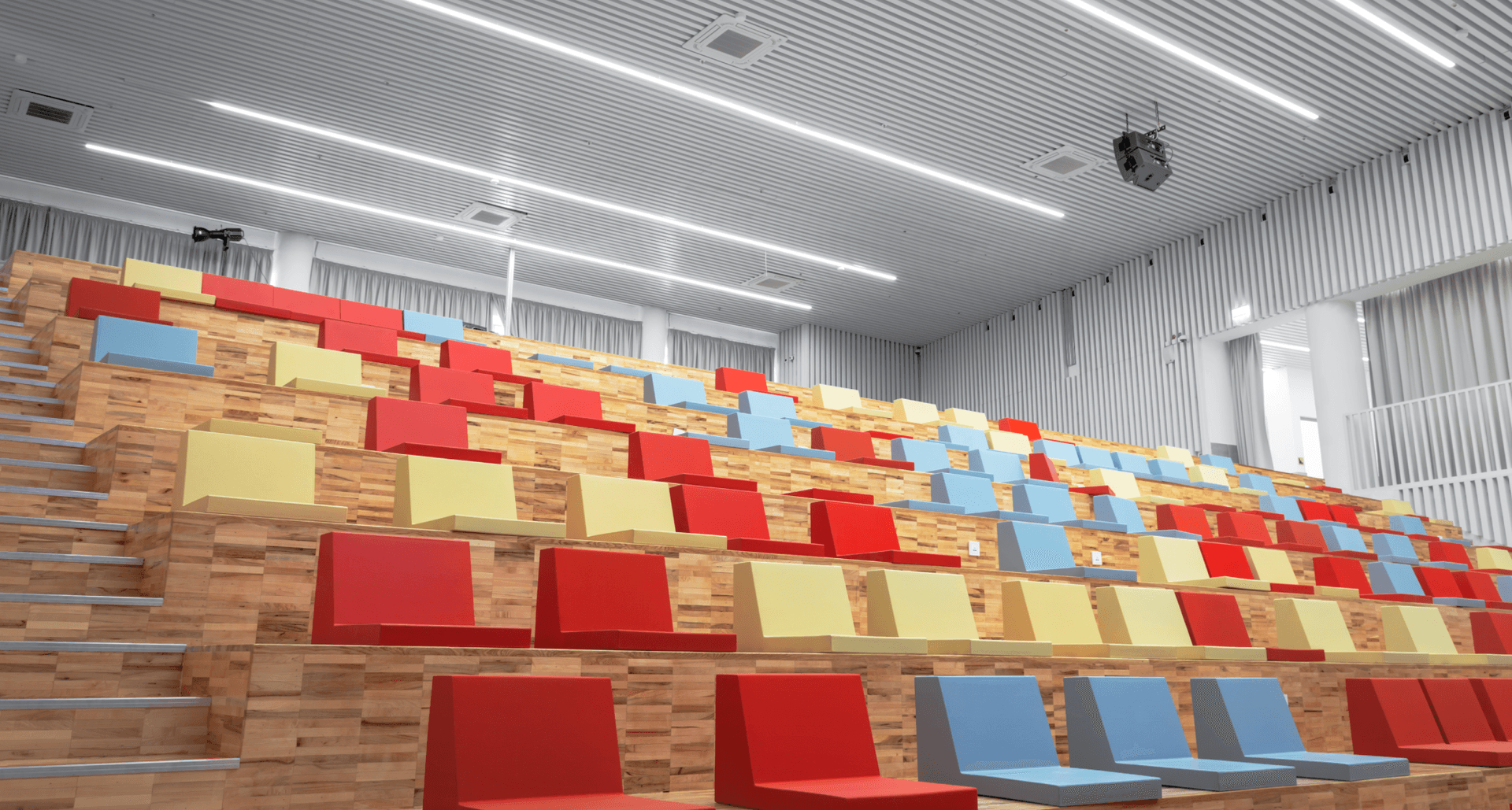 Создание световой среды, которая соответствует образовательному процессу в школе и может трансформироваться под его потребности. В проекте предусмотрена достаточно сложная интеграция светильников с другими коммуникациями - системой управления освещением, потолки, аварийное освещение и т.д.