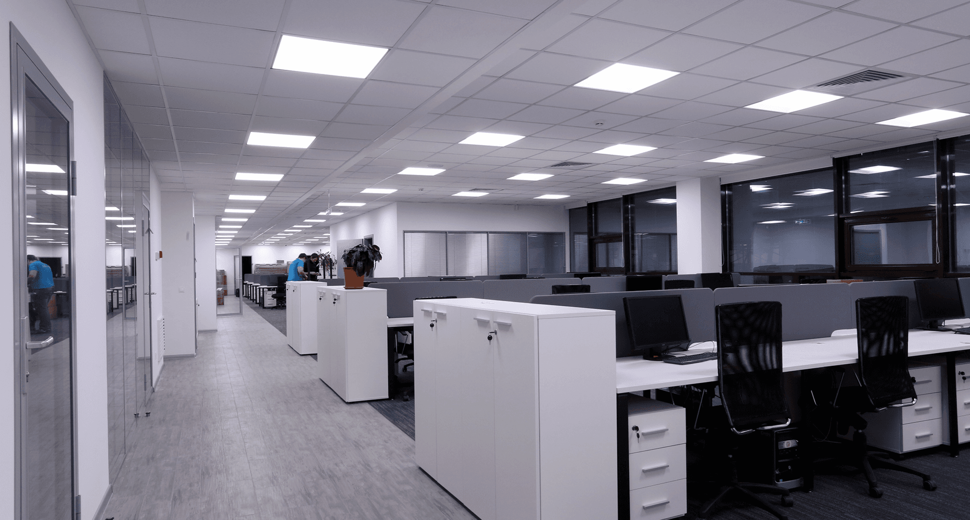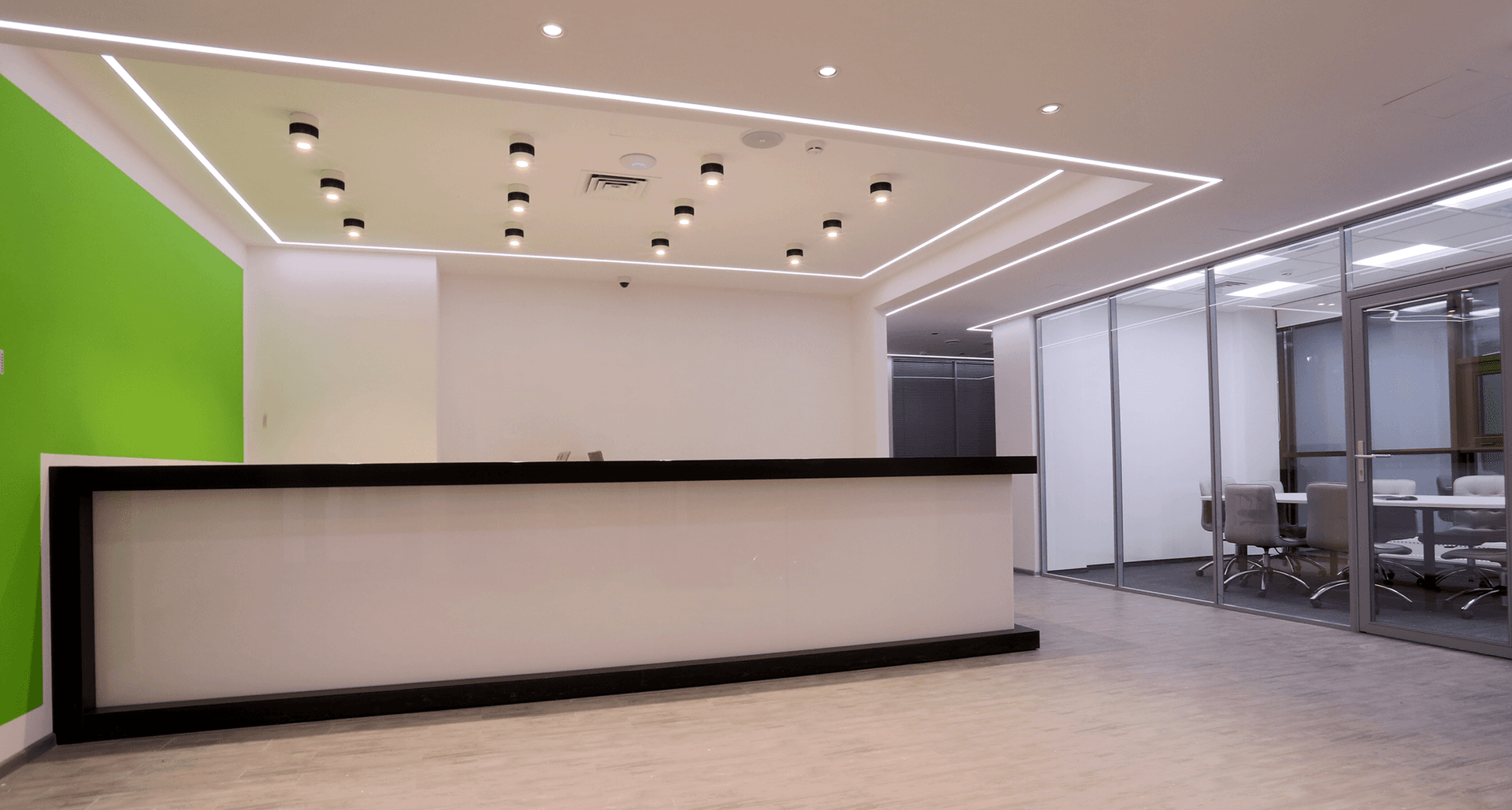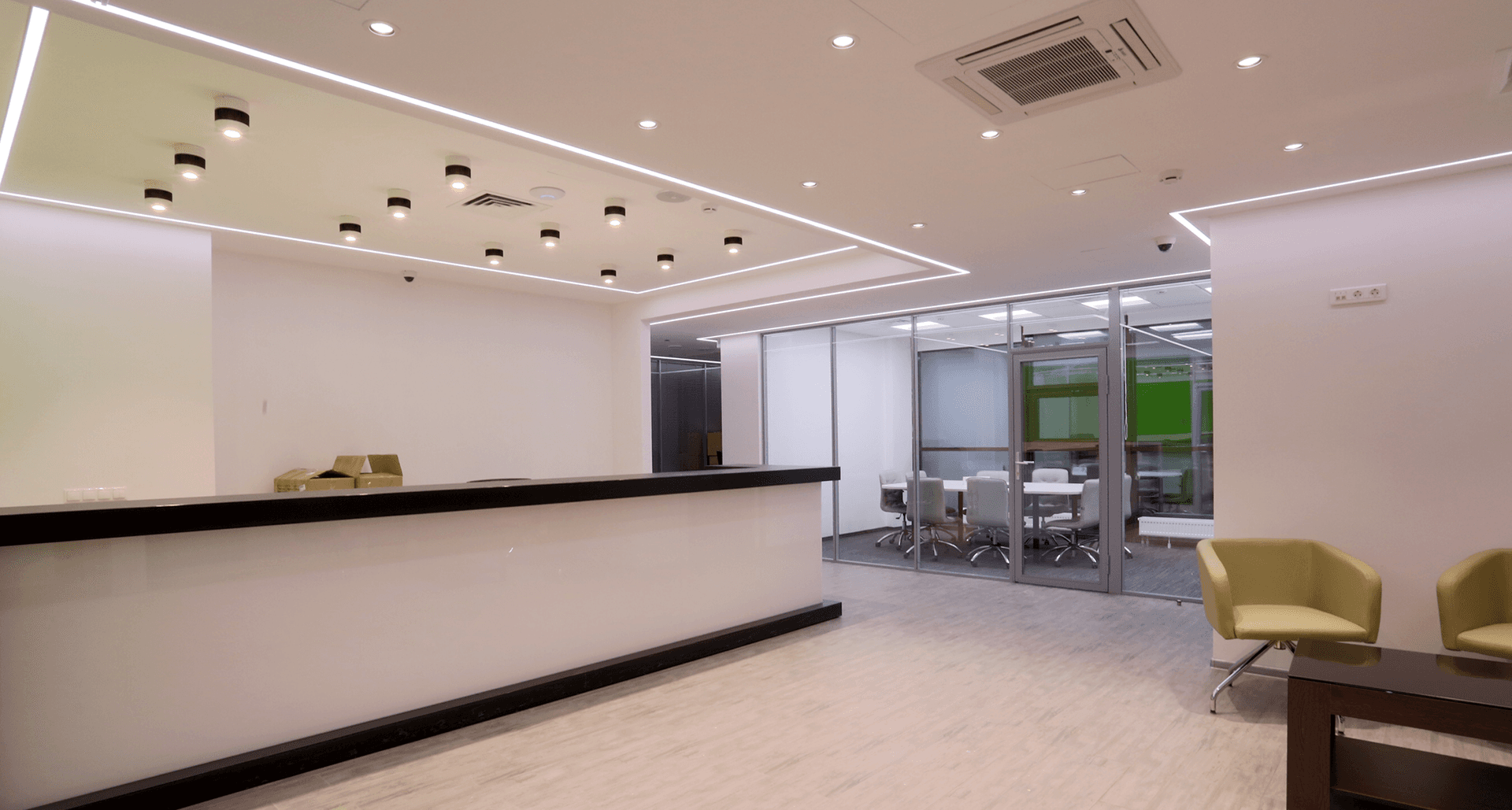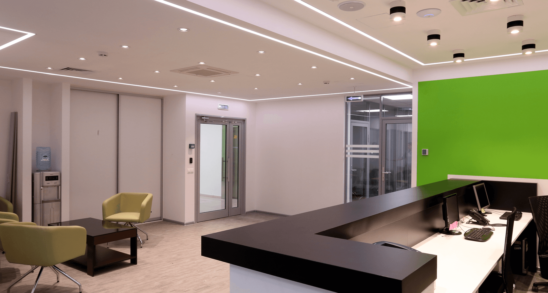 Предоставить светильники согласно утверждённой дизайн-концепции современного офисного пространства. При этом необходимо было соблюсти заданные уровни освещённости по каждой зоне и типу помещения, в том числе для open space, переговорных, кабинетов руководителей, коридоров и так далее.Применённые светильники: BARRO 25, SLIM LED 595, PROFILE 30+LED STRIP Flexline 96/7.7, OTR/R LED 595, SAFARI DL LED 26, DISCO 15, FLAME UNI LED 1600х190