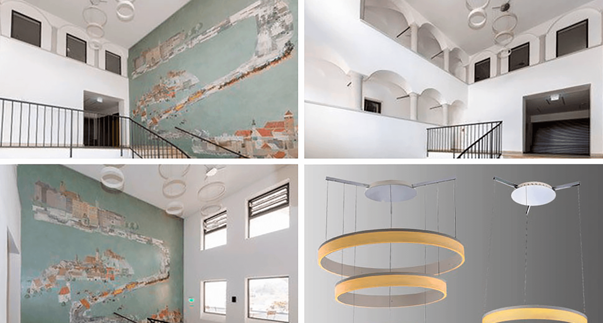 Для решения задачи использованы подвесные многоуровневые кольцевые светильники.