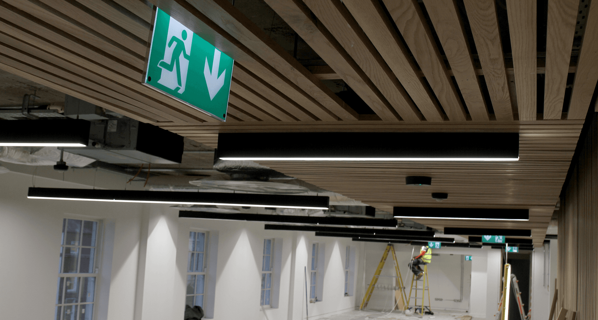Лаконичный дизайн светильников LINER/S LED отлично вписался в общую интерьерную концепцию офисного здания в центре Дублина. Применены и другие светильники производства компании "Световые Технологии", в частности для аварийного освещения.