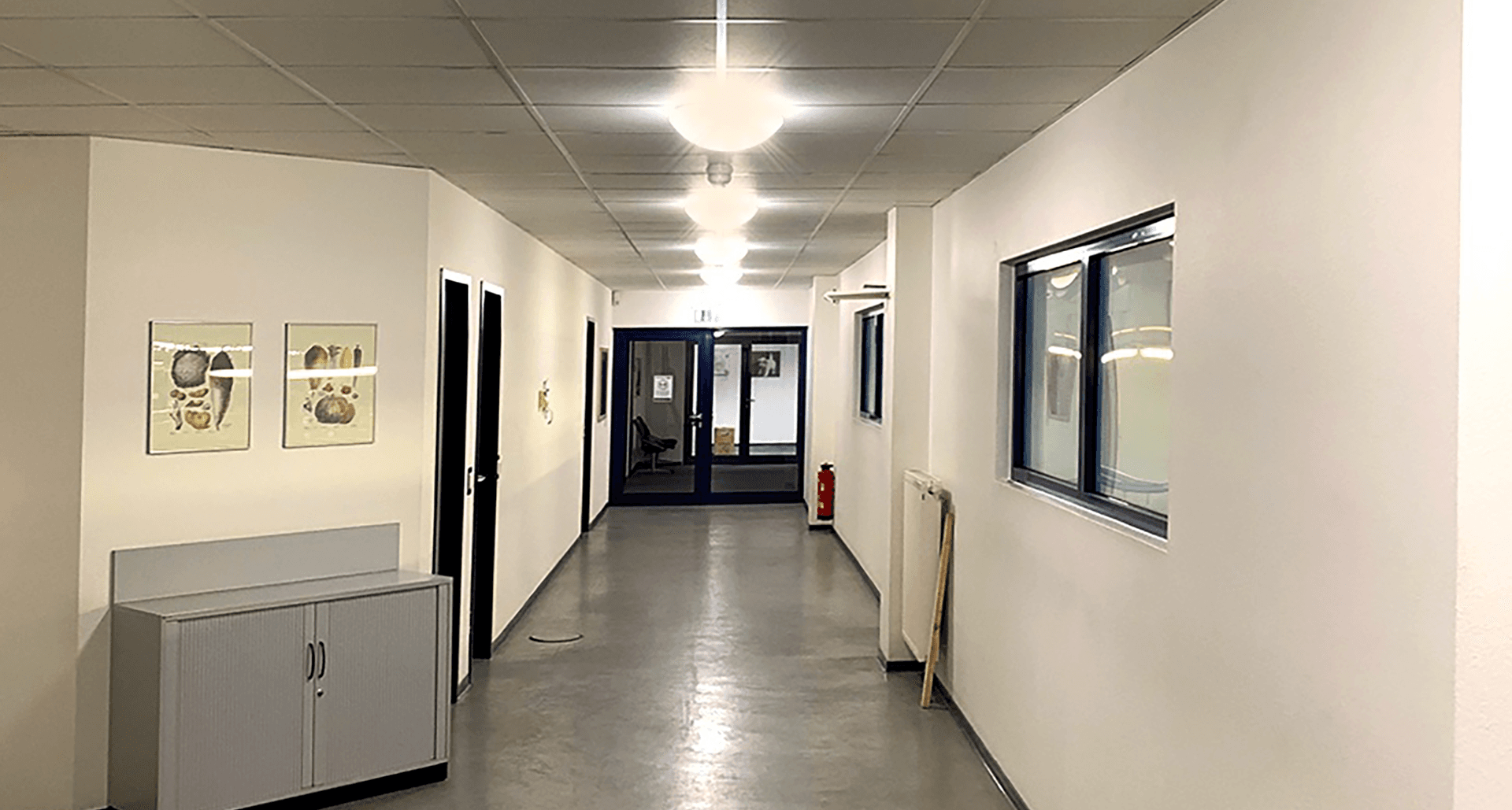 в офисе применены серии PIXEL LED и OPTIMA ECO LED, которые обеспечивают комфортное освещение рабочих зон с нужной интенсивностью света. В коридорах установлены RKL LED и OTX LED.