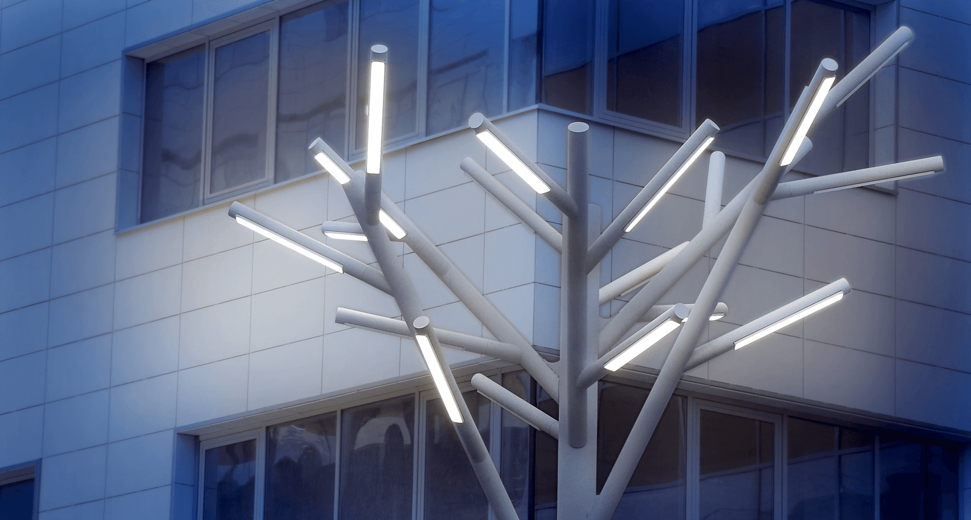 Светодиодный светильник в виде дерева создан в Ателье световых решений завода "Световые Технологии" в Рязани и предназначен для декоративного освещения торговых центров, парков, аллей, улиц (дополнительное освещение).