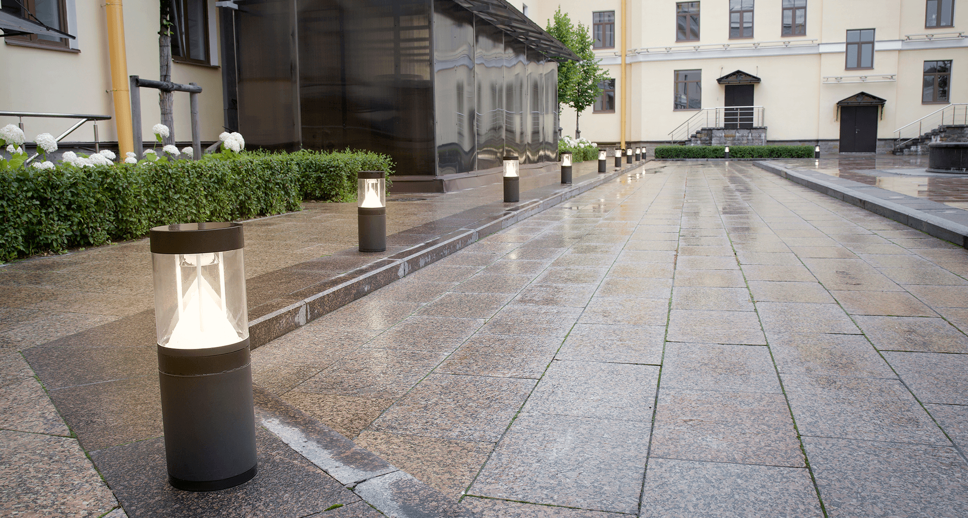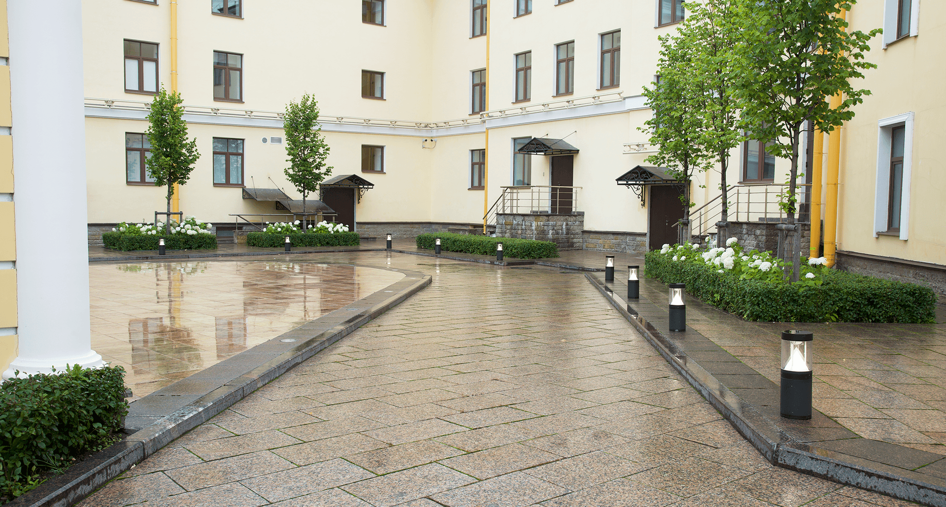 Для освещения прилегающей территории применен светильник TERES LED. Он cочетает в себе минималистичный дизайн и высокую эффективность, что позволяет использовать его как в парках и скверах, так и в городских кварталах. Светильник выпускается в двух версиях различной высоты - 1 м и 0.5 м.Специальная оптическая система дает неслепящий, комфортный и в то же время эффективный свет.