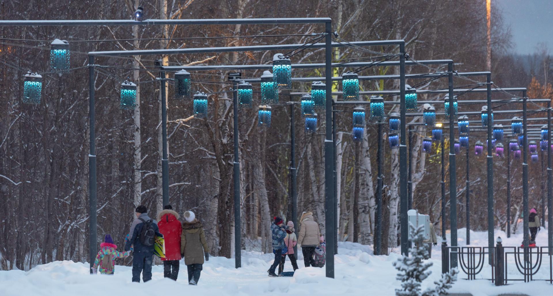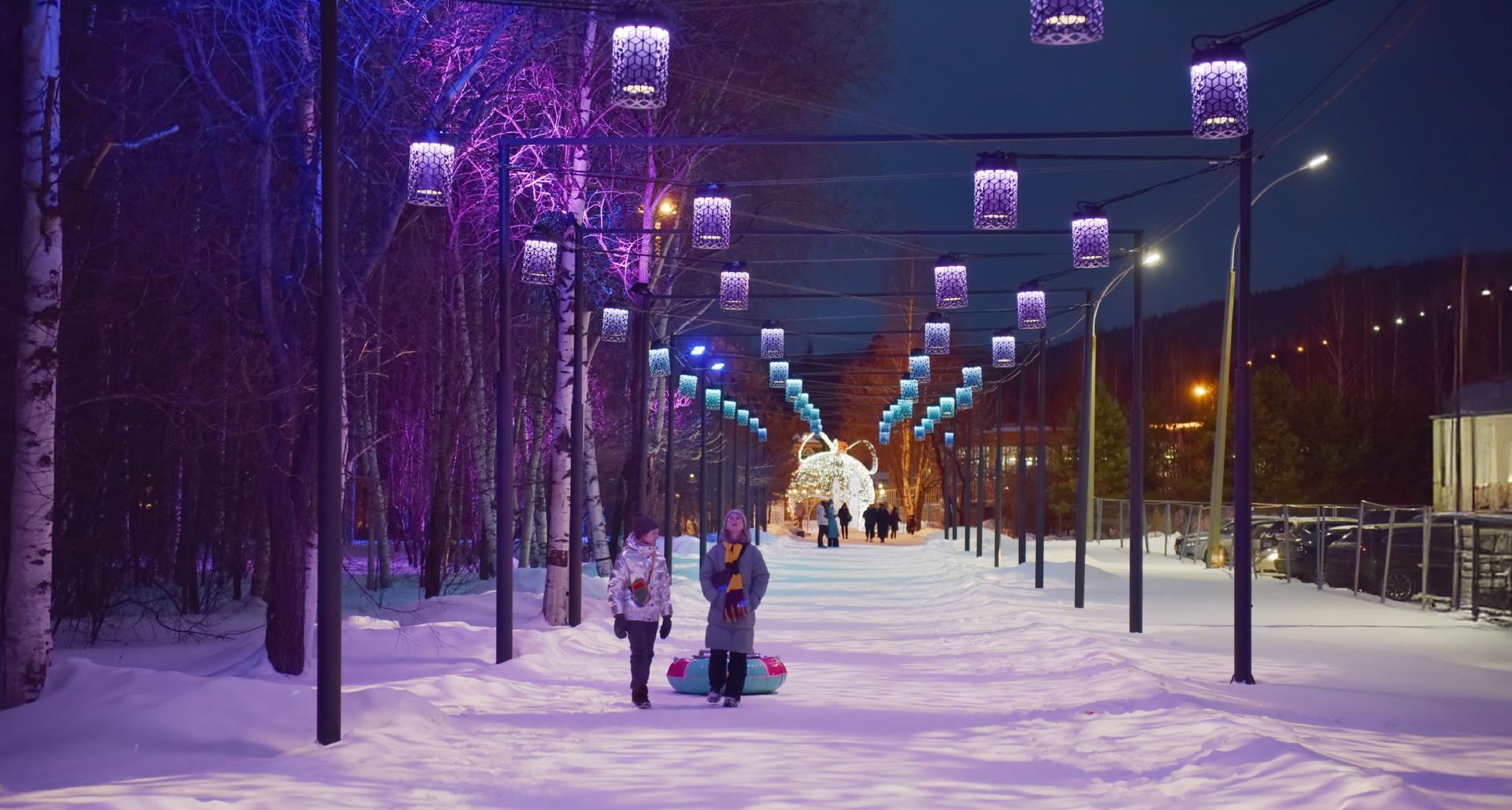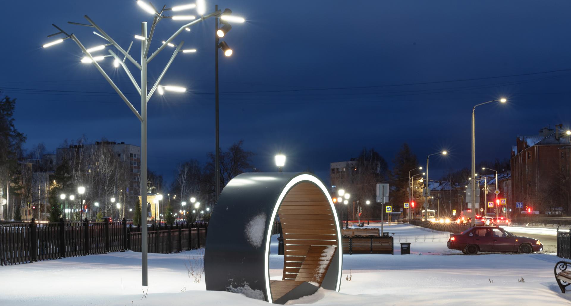 “СТ” предложили комплексное светотехническое решение, включающее разработку и изготовление уникальных светотеневых светильников на опоры и тросовые подвесы. Данное решение позволило создать действительно неповторимую световую среду общественных пространств, повысив их привлекательность и посещаемость. Дополняют общую картину прожекторы LEADER LED, а также LED-деревья, декоративные полуарки и МАФы (цилиндр с RGBW подсветкой и стеллы) от Альфреско. Особое внимание уделено адаптивности системы освещения, позволяющей изменять цветовую палитру в зависимости от сезона или мероприятий.
