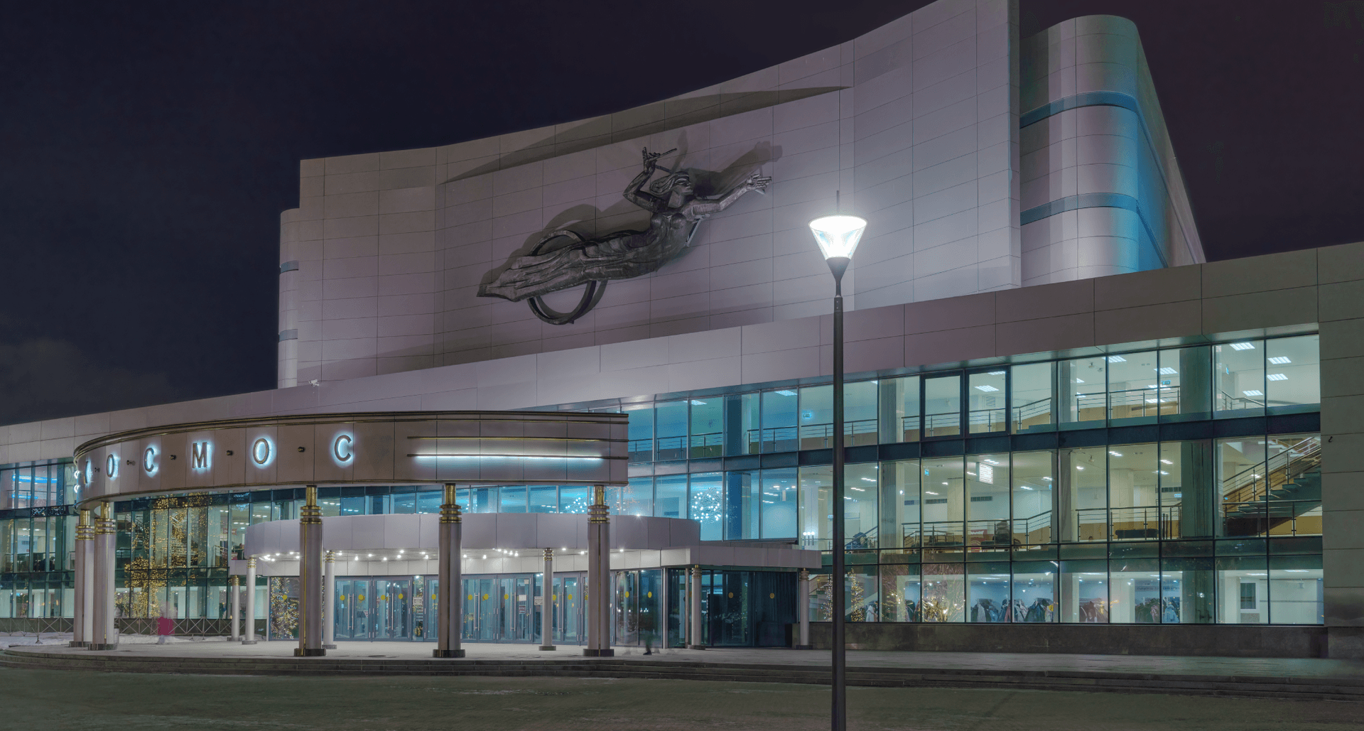 Для входной группы ККТ Космос были применены осветительные комплексы APEX LED 40W RW 840 RAL9005 SNR POLE 4M.