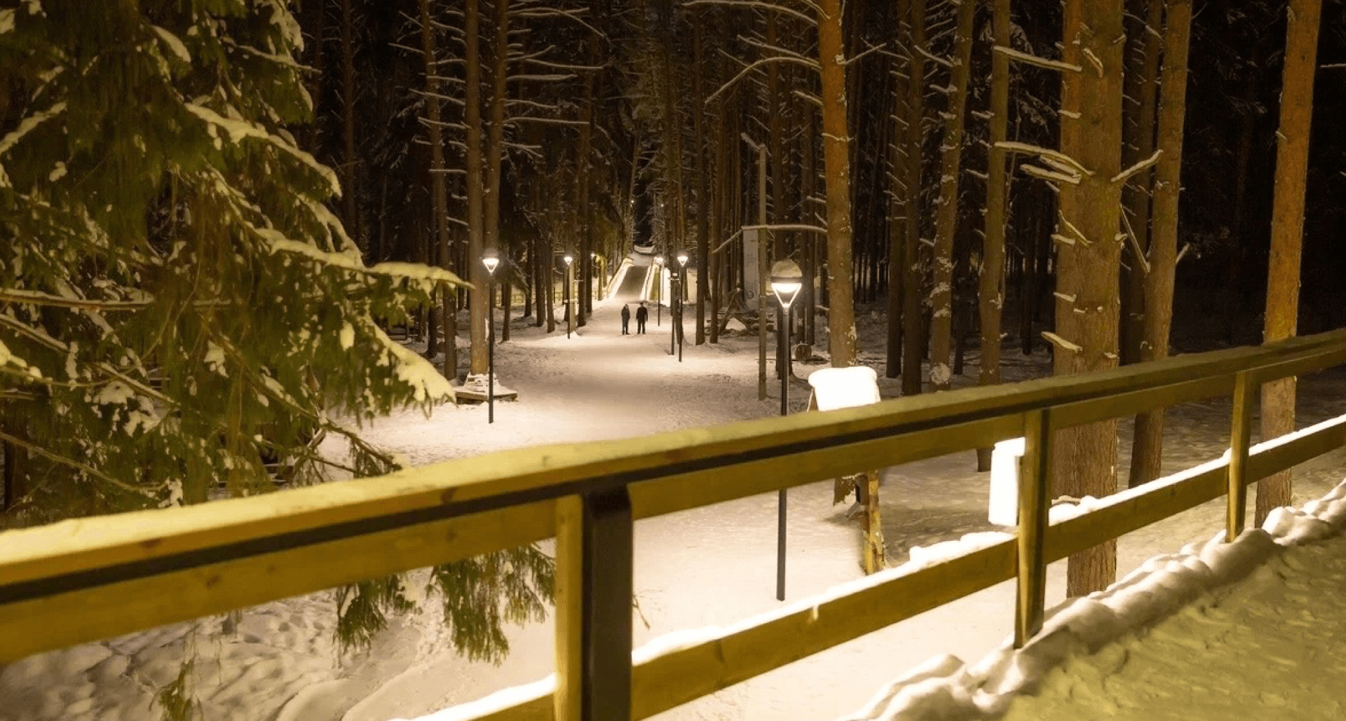 Пешеходные дорожки подсвечивают грунтовые светильники TOWER LED. Благодаря своему дизайнерскому исполнению, они также служат и арт-объектом, часто появляющемуся на фотографиях воткинцев в соцсетях. В пешеходные мостовые перила встроены EVOLINE FLEX, что в очередной раз подчеркивает универсальность прибора. За функциональный свет на лыжероллерной трассе и центральной площади отвечают GALAXY LED, VALLEY TOP POLE и LEADER LED.
