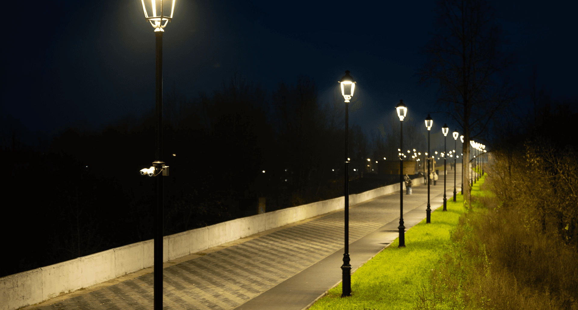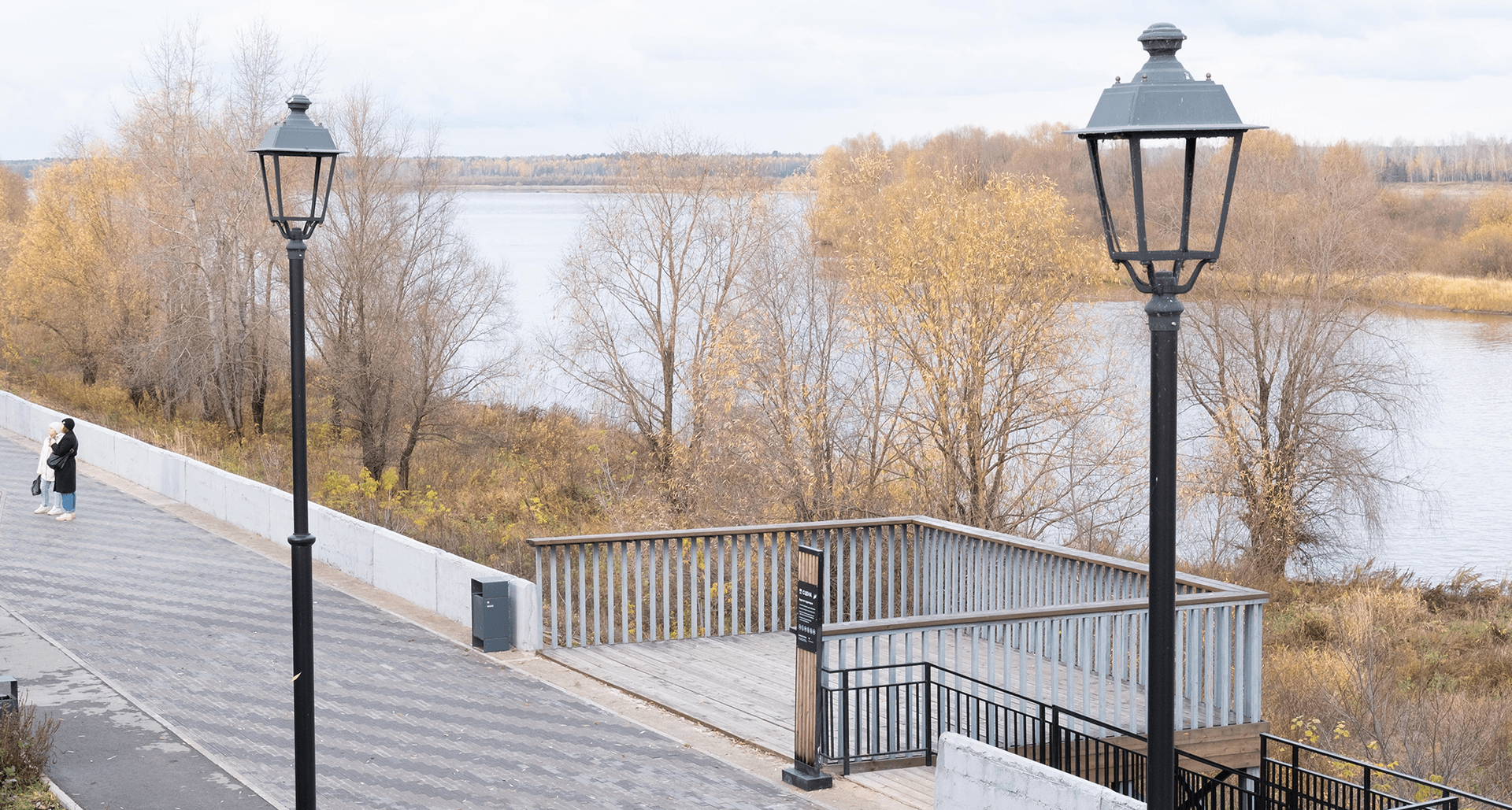 Чтобы подчеркнуть уникальный, элегантный стиль пространства, в ключевых местах применялись светильники CLASSIC G2 60W RW1 в сочетании с классическими опорами с чугунными элементами, что позволило создать привлекательный облик объекта в любое время суток. Для обеспечения яркого и равномерного освещения в детской зоне были использованы современные прожекторы GLOSS LED (20W и 30W), установленные на круглоконические опоры.