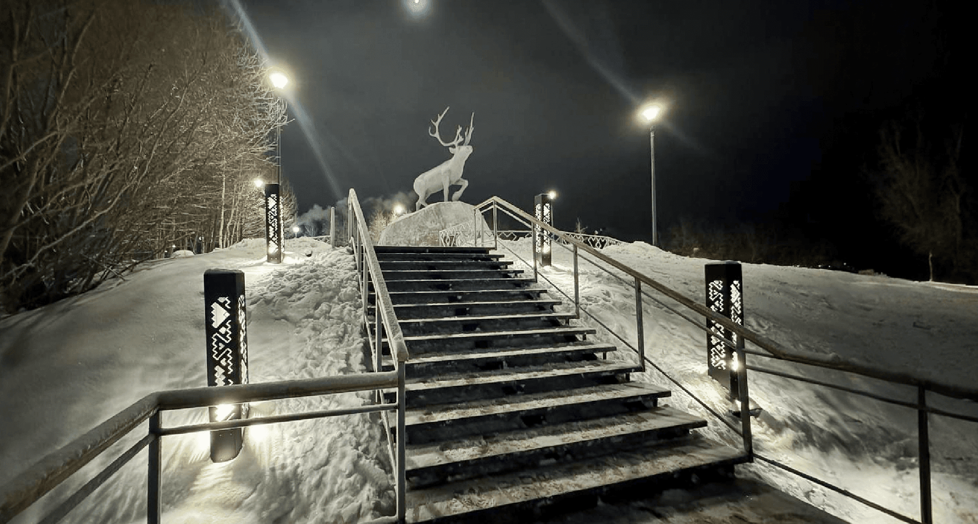 Благоустройство сквера “Северный олень” с применением современного освещения. Необходимо было не только обеспечить комфортное и безопасное освещение территории, но и подчеркнуть уникальность сквера, а также отразить его культурное значение.