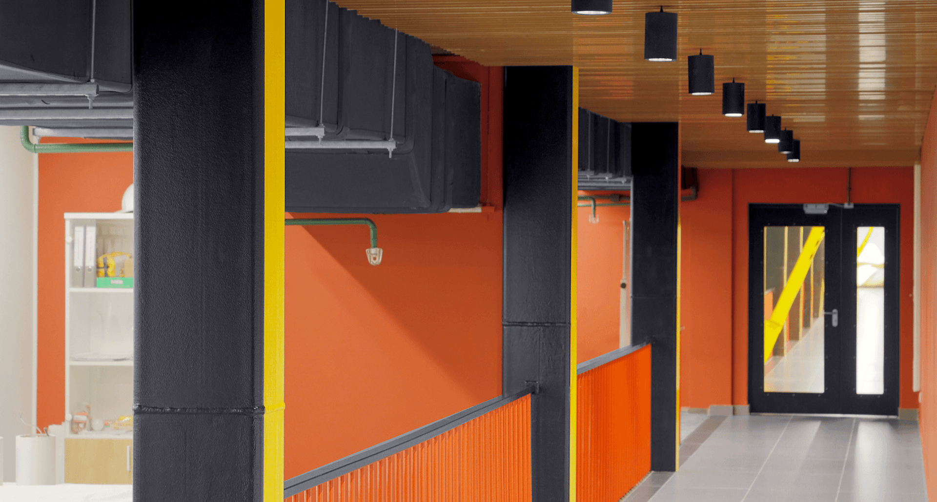 создано комфортное освещение, особенное внимание уделено освещению цехов, где есть повышенная зрительная нагрузка работников в связи с работой с мелкими деталями. Светильники обеспечивают необходимый уровень света, чтобы полностью освещать область машин, без формирования затемненных участков пространства. Большое число светильников разработано и изготовлено на заказ в Ателье световых решений на заводе компании "Световые Технологии" в Рязани.