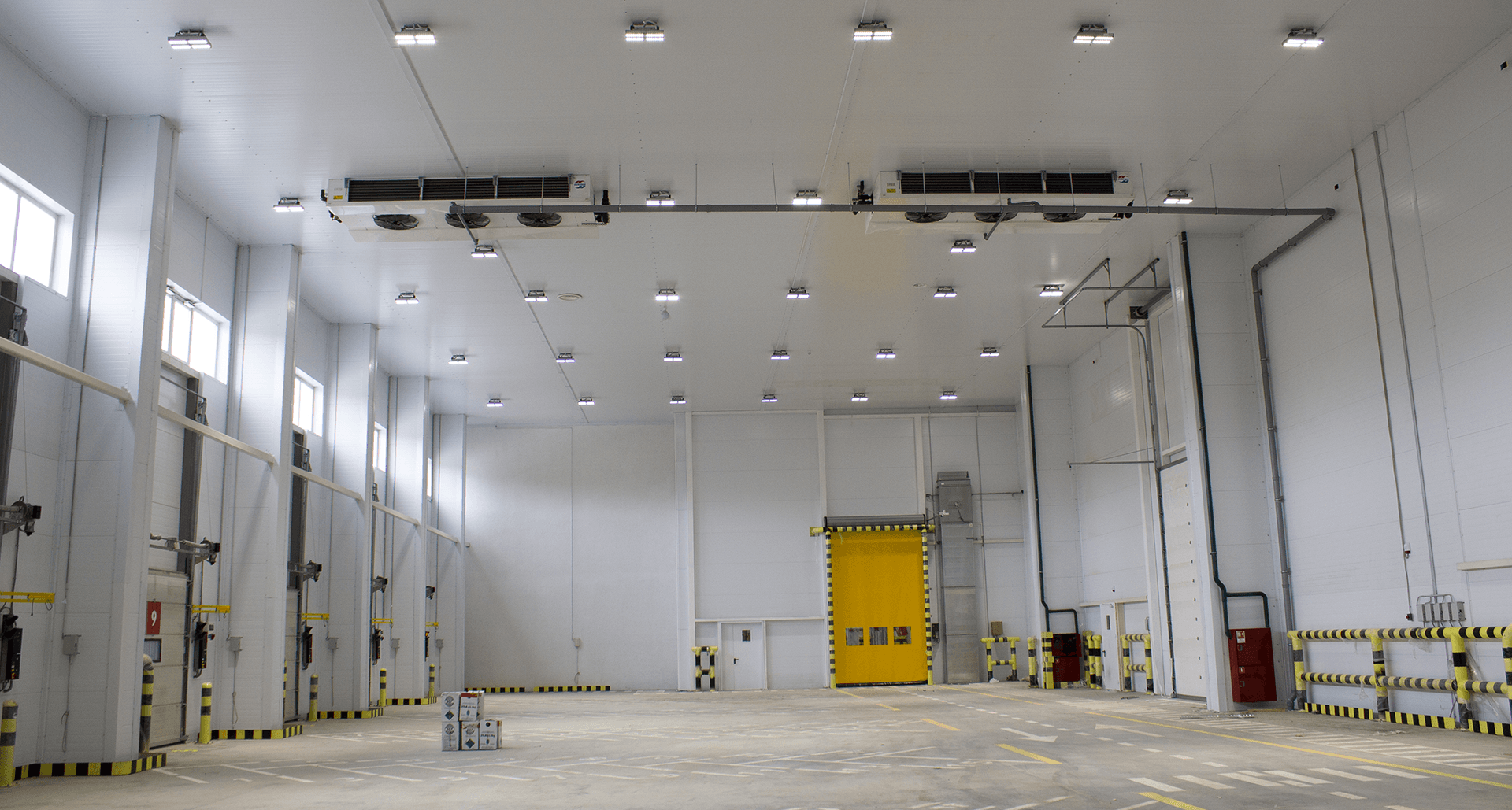 Основное освещение складских помещений выполнено с применением светильников с системой управления DALI и интеллектуальной системой управления ME 6 6 DALI от компании DEUS. Для управления более чем 1300 светильниками (или 2600 драйверами DALI), поскольку HD LED – двухмодульный, были установлены 32 роутера управления, 156 комбинированных датчиков освещенности и присутствия EBDHS-DNET1 и один сервер с платформой ME6 DALI. Все это обеспечивает работу осветительной системы по требованиям заказчика.Установленные датчики движения позволяют включать только ту зону, в которой присутствует движение. Тем самым, срок службы осветительного оборудования увеличивается, а датчики освещенности обеспечивают экономию энергопотребления всей системы до 50%.Выполнен светотехнический расчет, подбор оборудования, шеф-монтаж.