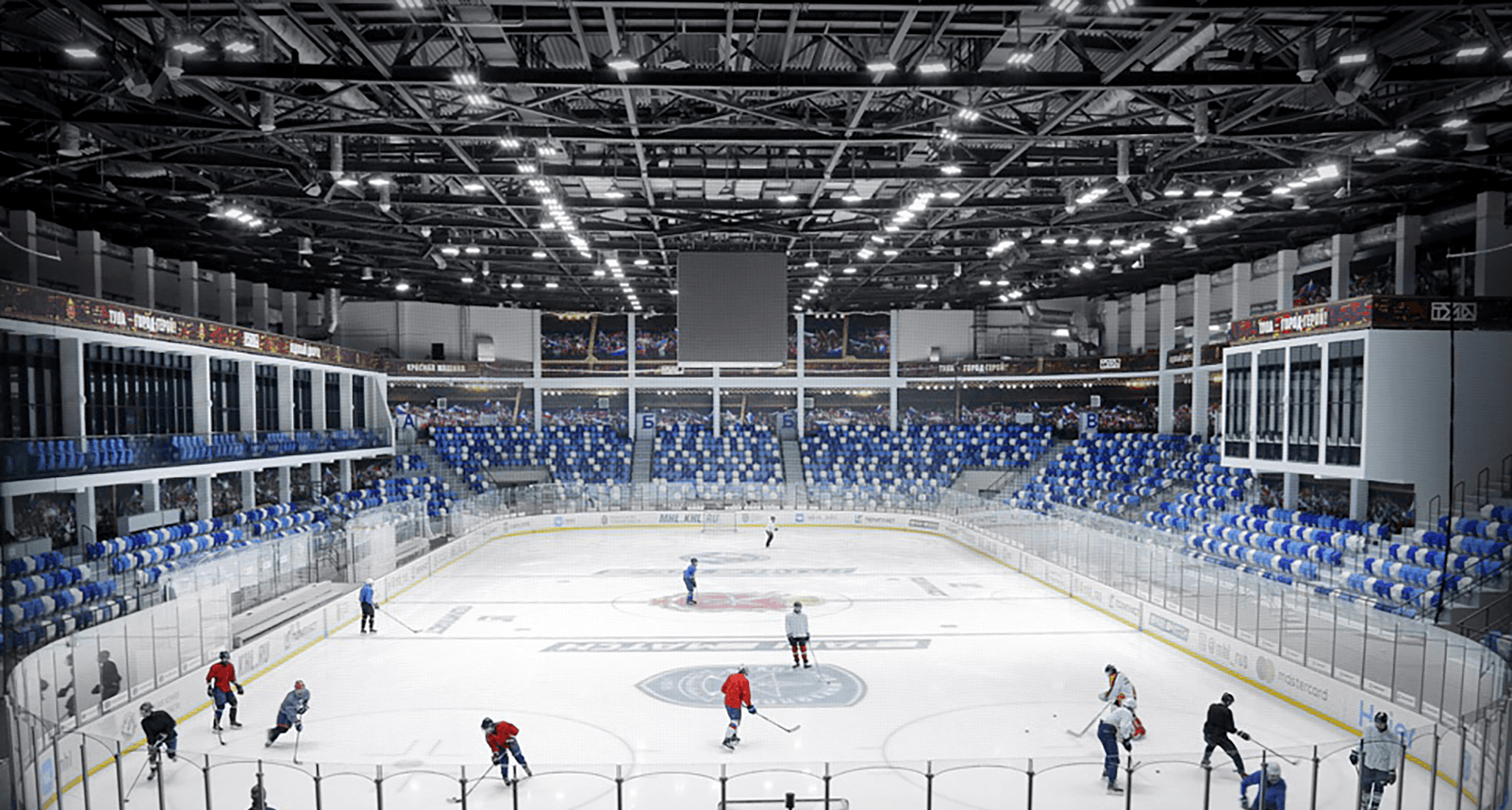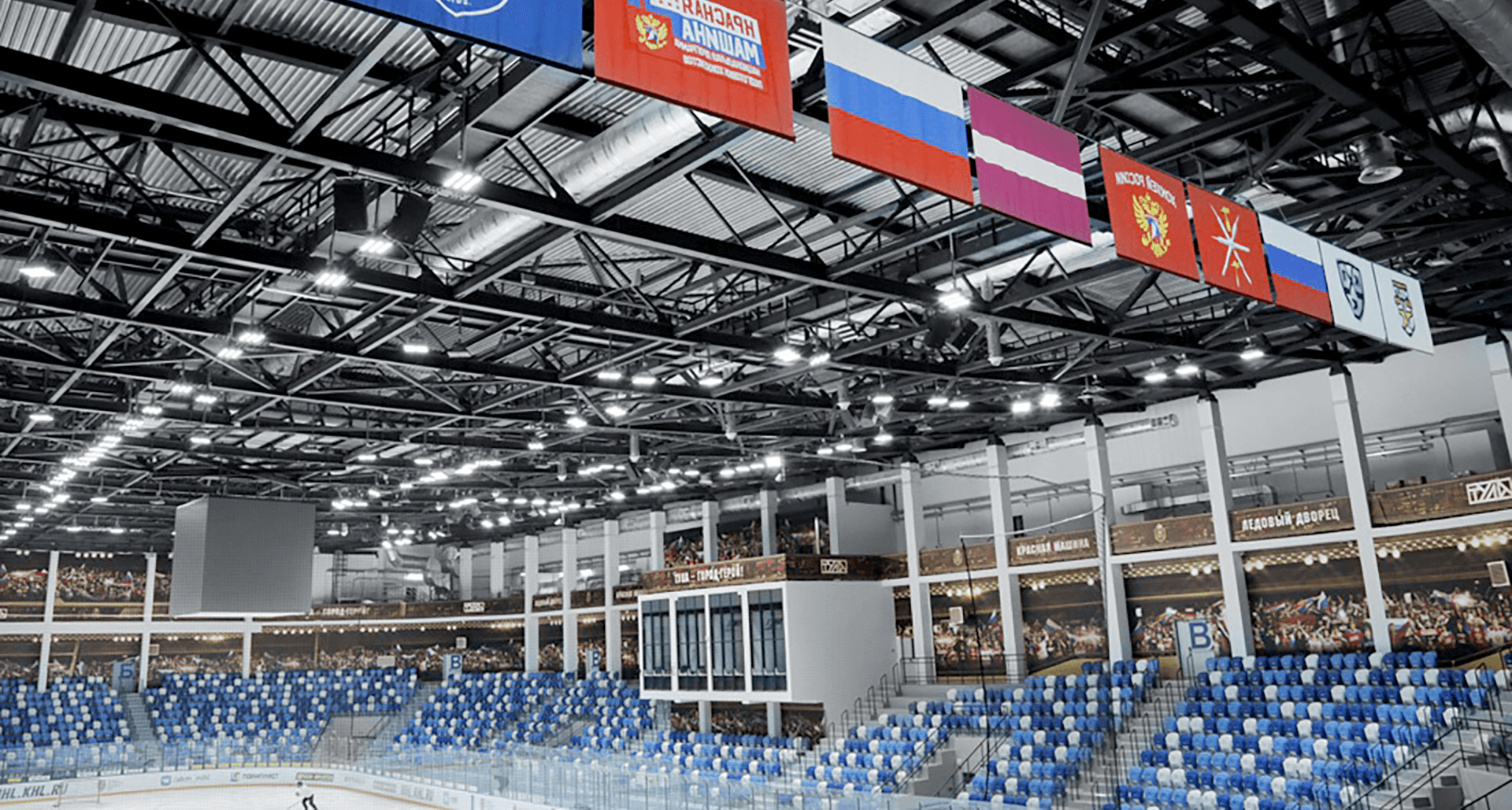 обеспечить качественное освещение ледовой арены с учётом жестких требований к ТВ-трансляции, а также разбиения системы освещения на несколько режимов.