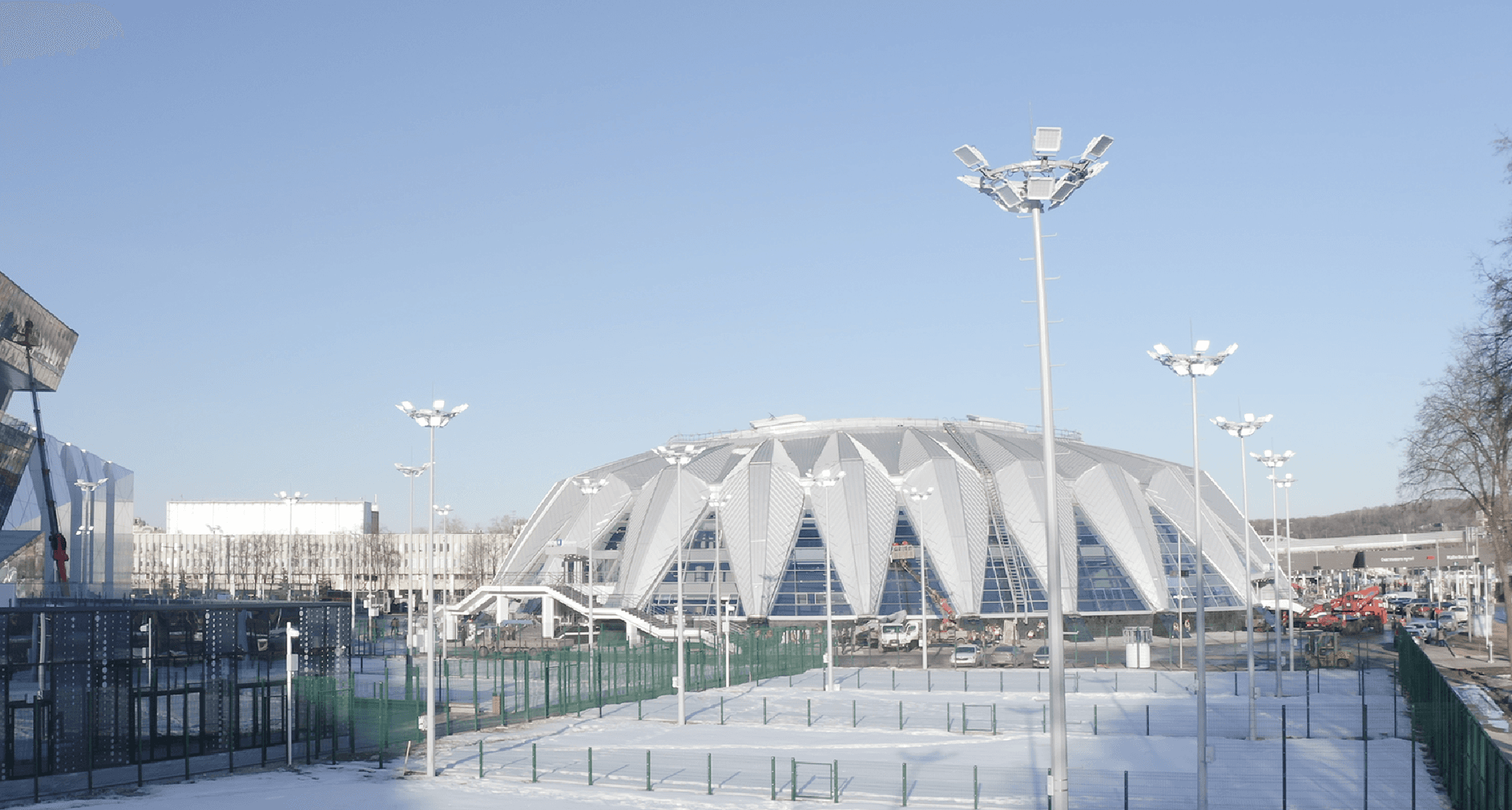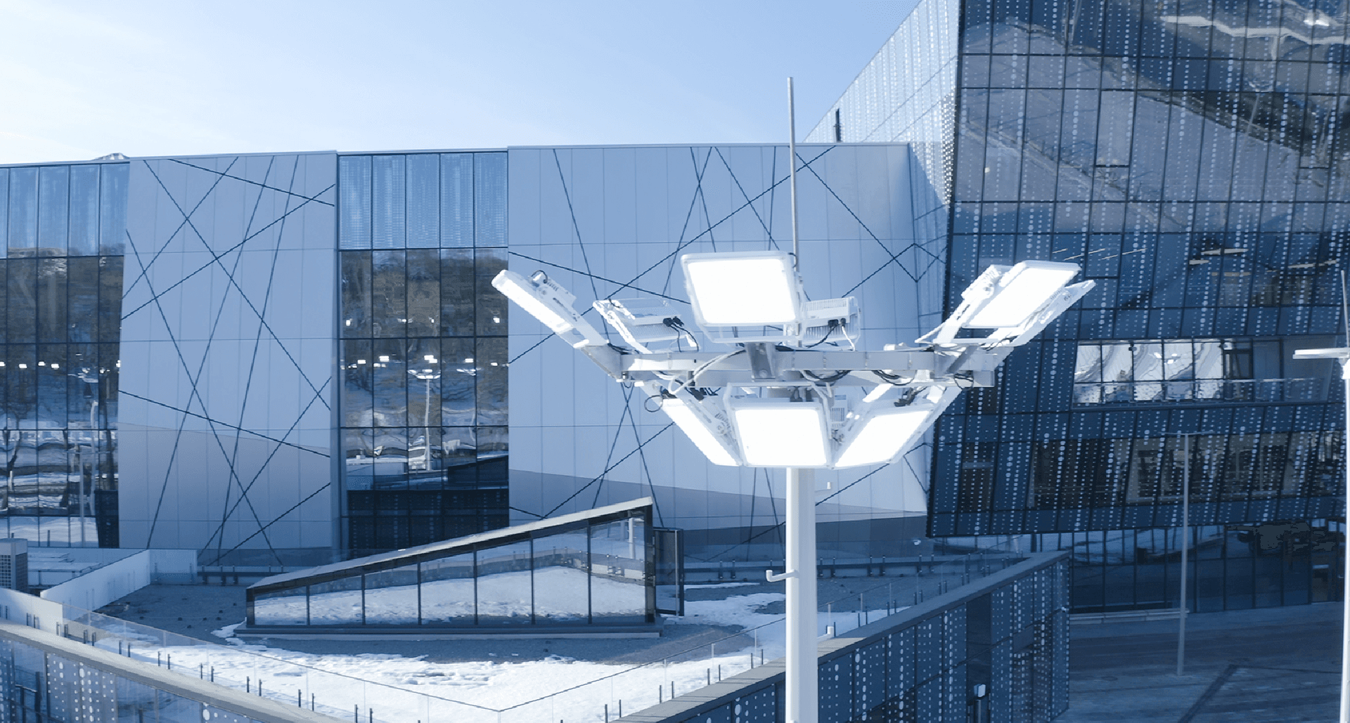 На объекте установлено 8,5 тысяч светильников компании «Световые Технологии». Реализовать задуманные геометрические фигуры получилось с помощью популярного продукта PROFILE, форму которого получилось адаптировать под все нестандартные идеи. Для освещения уличных кортов были разработаны модификации спортивного прожектора ATHLET c управлением по протоколу DMX, а для освещения крытых кортов установлены модификации прожекторов FORWARD c управлением по протоколу DMX.
