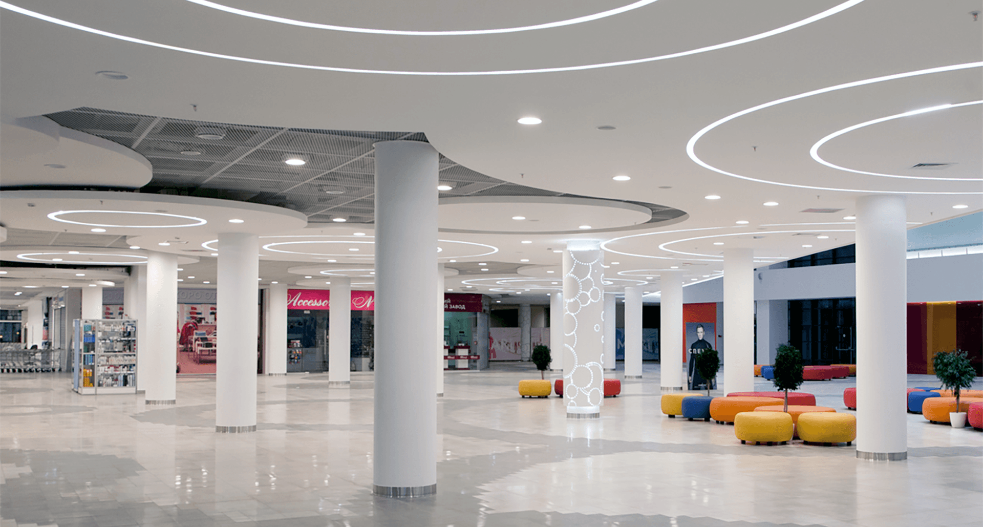 Cогласно проекту польского дизайн-бюро, было необходимо разработать порядка пятнадцати новых модификаций светильников для торгового и декоративного освещения. Помимо этого, задача заключалась в подборе светильников и светового оборудования для всех видимых зон комплекса.