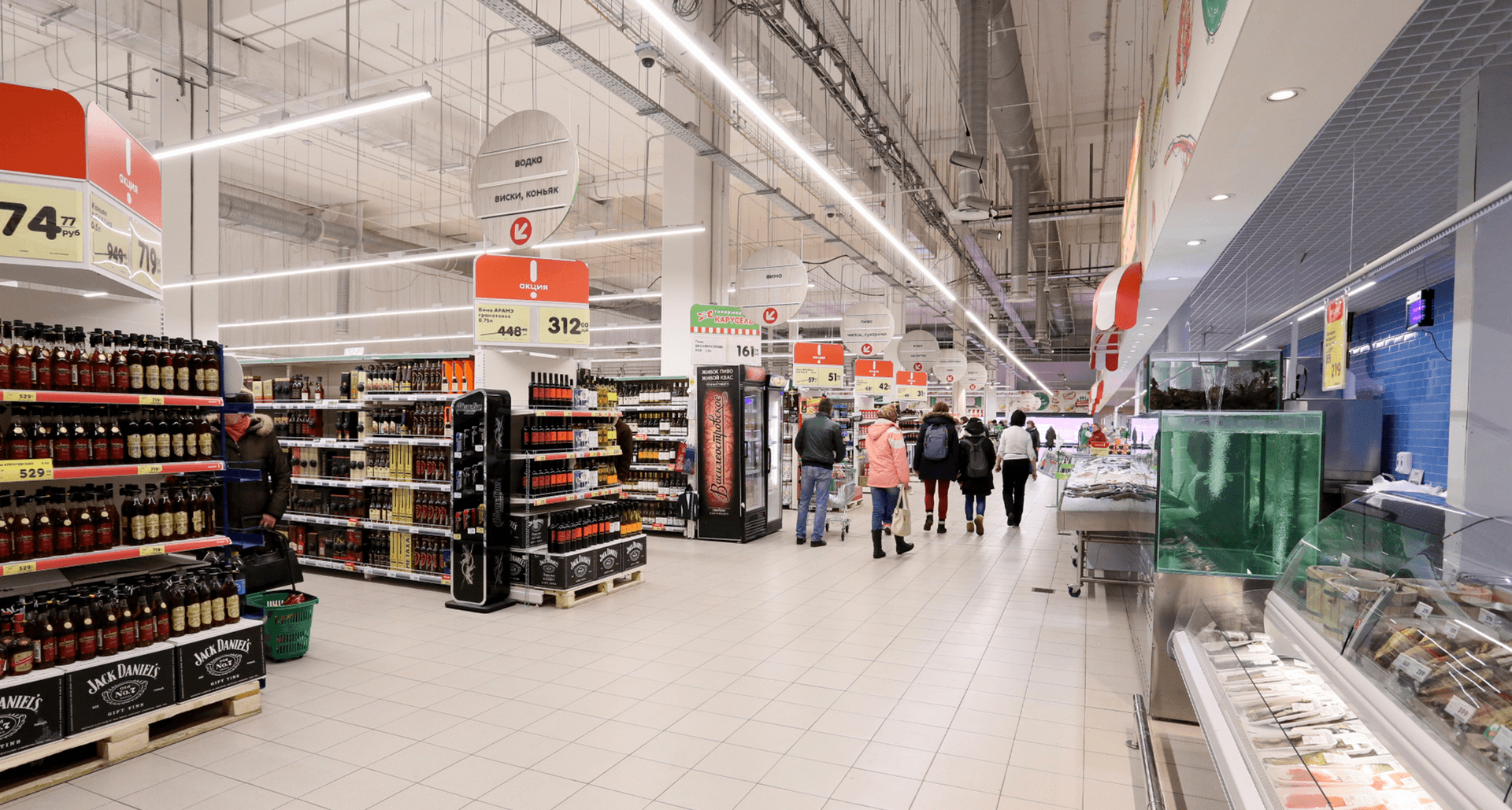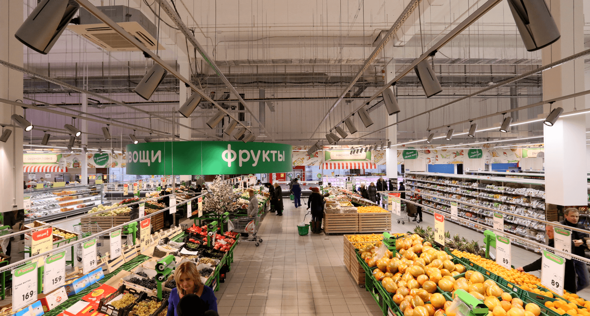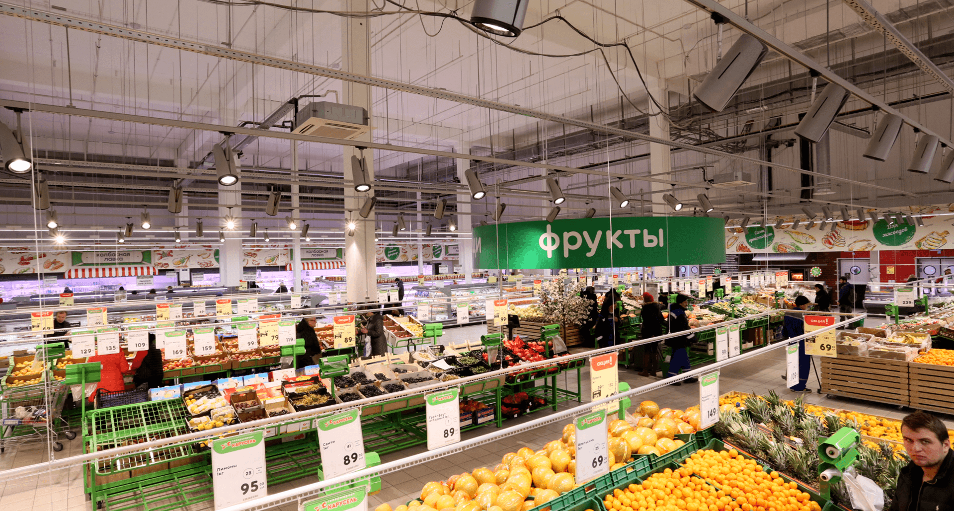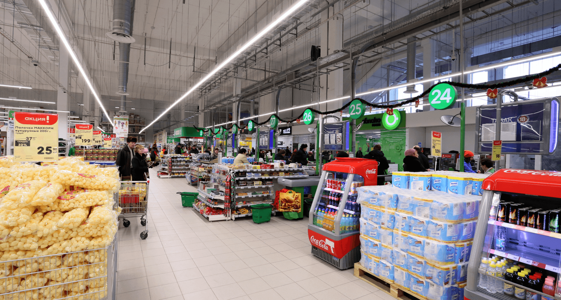 Заказчик поставил задачу заменить устаревшее освещение в нескольких гипермаркетах на светодиодное до конца 2016 года. Это касается всех зон освещения – от основного света до акцентного. Наше решение должно было удовлетворять строгим требованиям заказчика, обеспечивать не только высокую общую освещенность, но и равномерность освещения товара на всех уровнях стеллажей и полок. Уменьшение затрат на электроэнергию и эксплуатационные расходы – еще одна важная задача со стороны клиента.