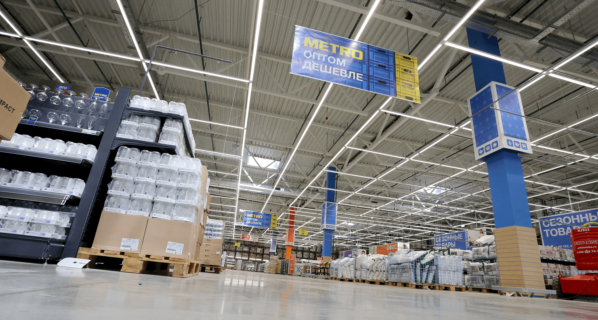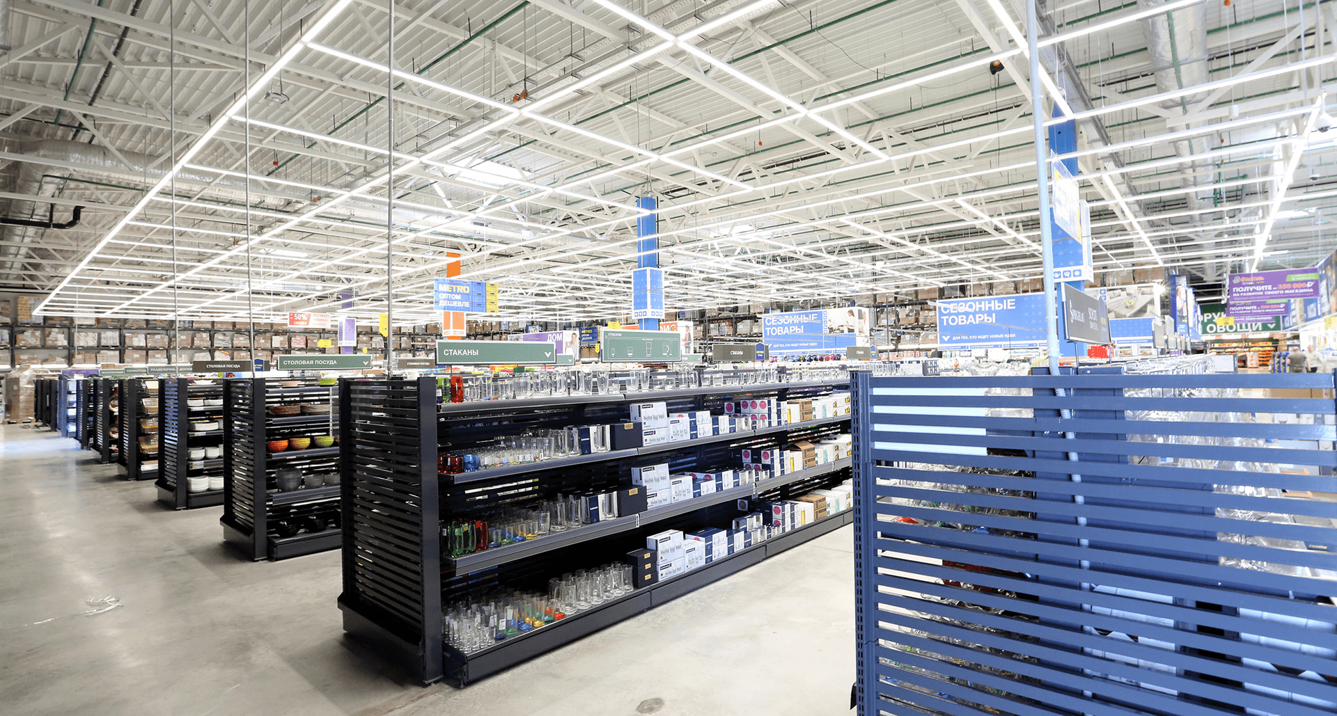 Перед нами была поставлена задача применить на объекте гипермаркета METRO современное энергоэффективное оборудование, отвечающее концепции гипермаркета и позволяющее создать общее равномерное освещение зоны непродовольственных товаров (non-food).