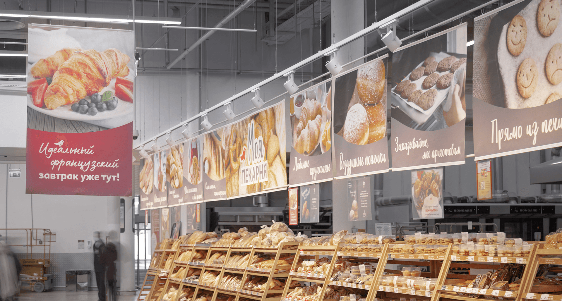 Гипермаркеты АШАН - всем знакомый формат покупок для всей семьи. Магазины сети отличаются большими площадями и широким разнообразием товаров. Перед нами была поставлена задача проработать зоны акцентирования - мясной отдел, отдел с фруктами и овощами, а также осветить стеллажи со свежей выпечкой. Для заказчика было важно сакцентировать внимание покупателей на отдельных группах товаров с использовнием трековых систем, чтобы в процессе эксплуатации оставалась возможность изменения положения световых приборов в пространстве.