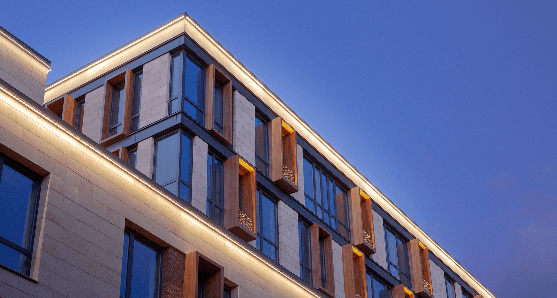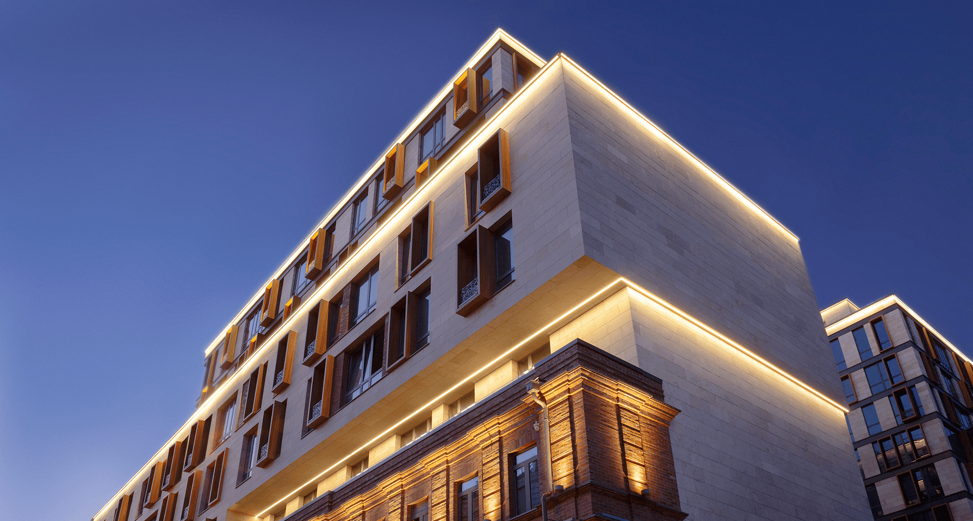 Реализовать концепцию фасадного освещения от дизайнера проекта.