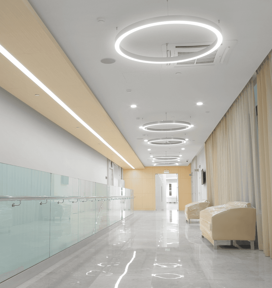 Решения «Световых Технологий» по освещению больниц реализуются в соответствии со всеми техническими требованиями и нормами, характерными для помещений, располагающихся внутри медицинских учреждений. Мы разрабатываем качественное освещение, создающее безопасную и комфортную обстановку в больнице.